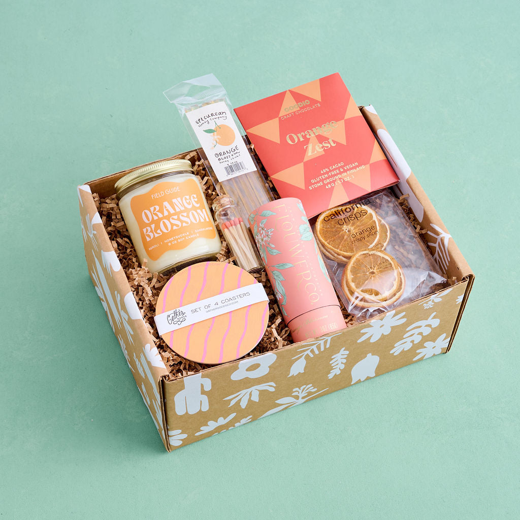 Meet The Orange Blossom — a joyful ode to all things citrus. From sun-drenched scents to sweet, zesty treats, this gift box was made to lift spirits and spark smiles. With thoughtful touches perfect for cocktail hours or slow Sunday mornings, it’s a little slice of sunshine delivered right to their door.