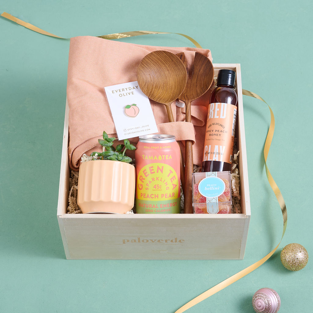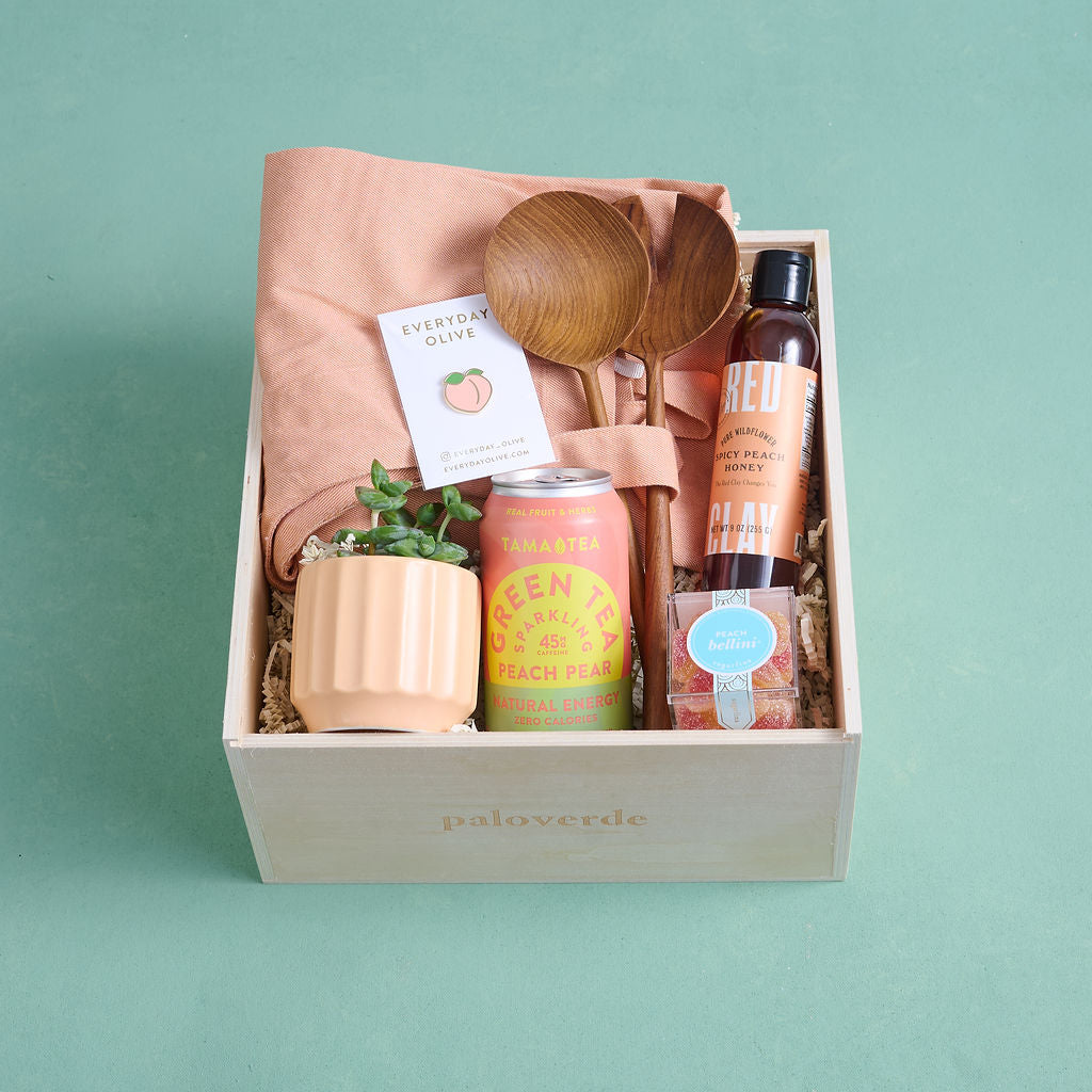 Savor the taste of summer with our Peachy Keen gift box—a sun-kissed collection made for BBQs, picnics, and long, lazy afternoons. Filled with kitchen favorites and peach-inspired treats, this box captures the sweetness of ripe fruit, shared laughter, and golden-hour gatherings. Perfect for host thank-yous, summertime birthdays, housewarmings, or simply sending a little sunshine “just because,” Peachy Keen is a joyful way to celebrate summer’s simple pleasures—one peachy moment at a time.