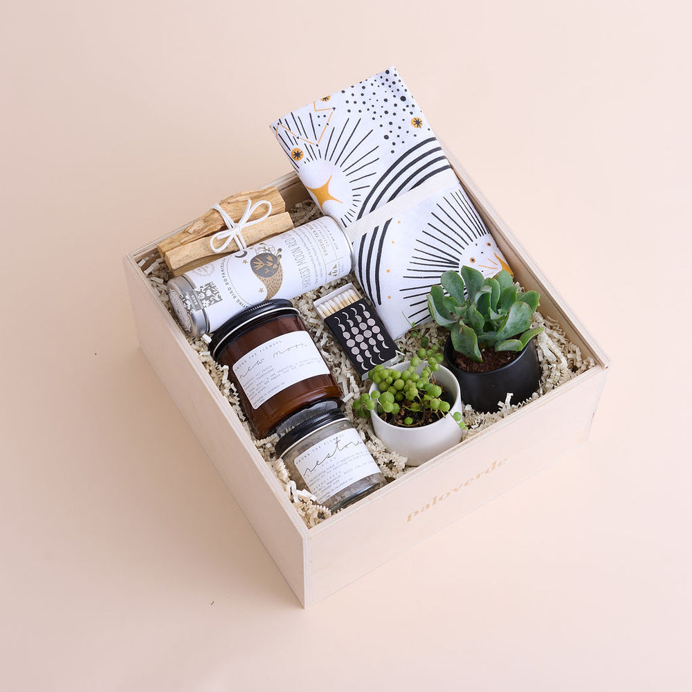 Gift your recipient a luxurious unboxing experience and build your own custom gift box using our box builder! Choose a box, select your gifts & pick a greeting card. Include a gift message and we'll handwrite it, package + send everything with care.