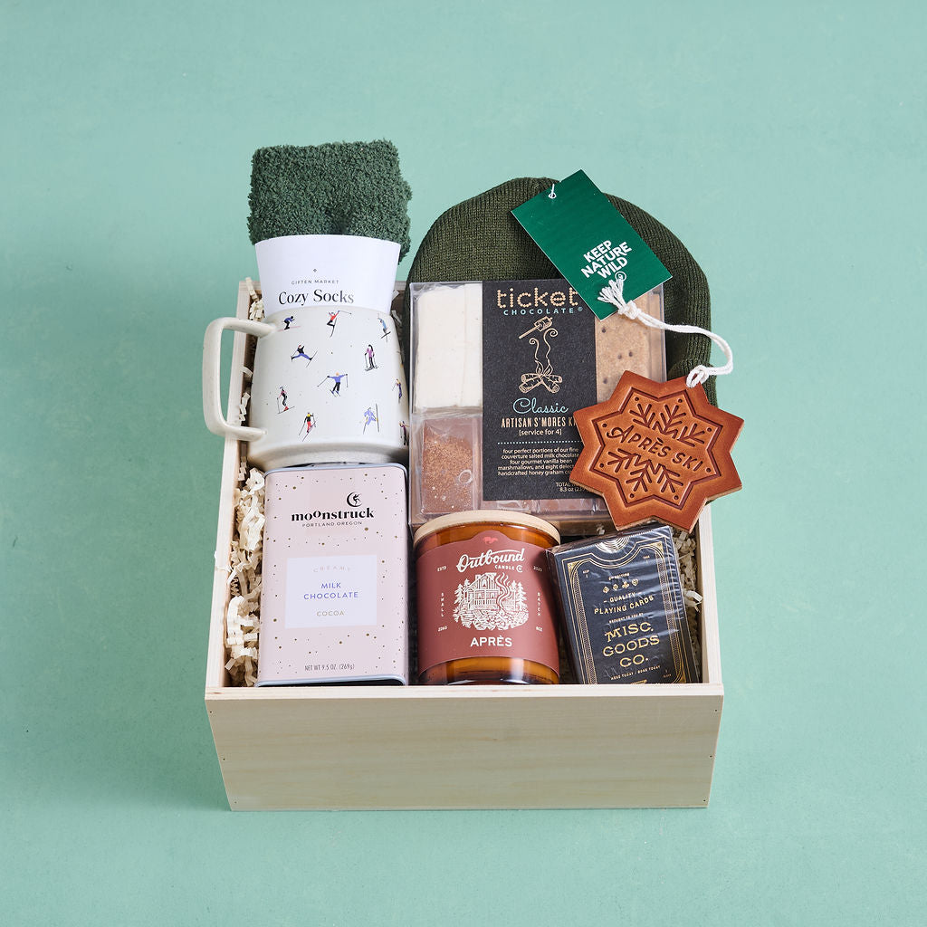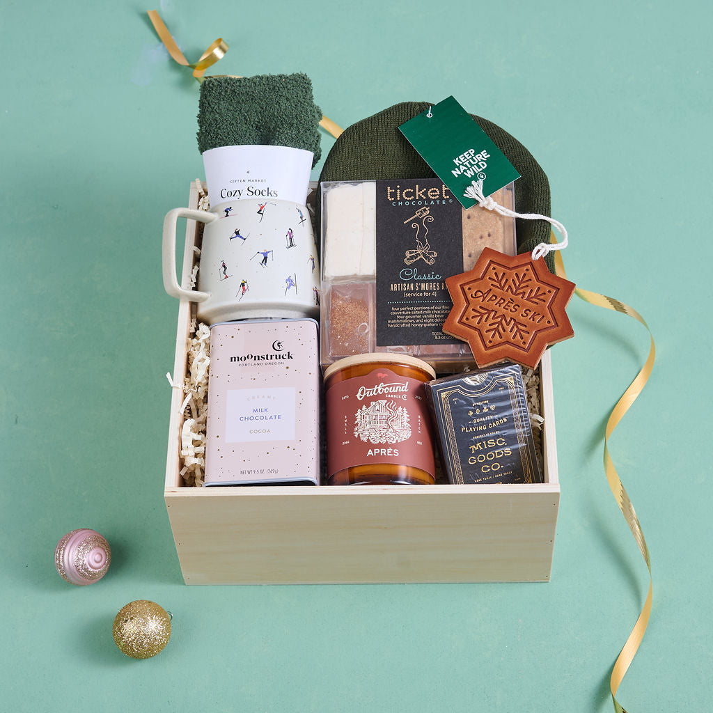 Settle in after a day of winter adventures with our Après Ski gift box — a cozy celebration of everything we love about cold-weather unwind time. With comforting scents, sweet treats, soft textures, and wintry touches, this box is designed for slow evenings, warm drinks, and reliving the joy of a day spent in the snow. A thoughtful holiday gift for friends, coworkers, hosts, or anyone who loves the magic of winter’s quieter moments.