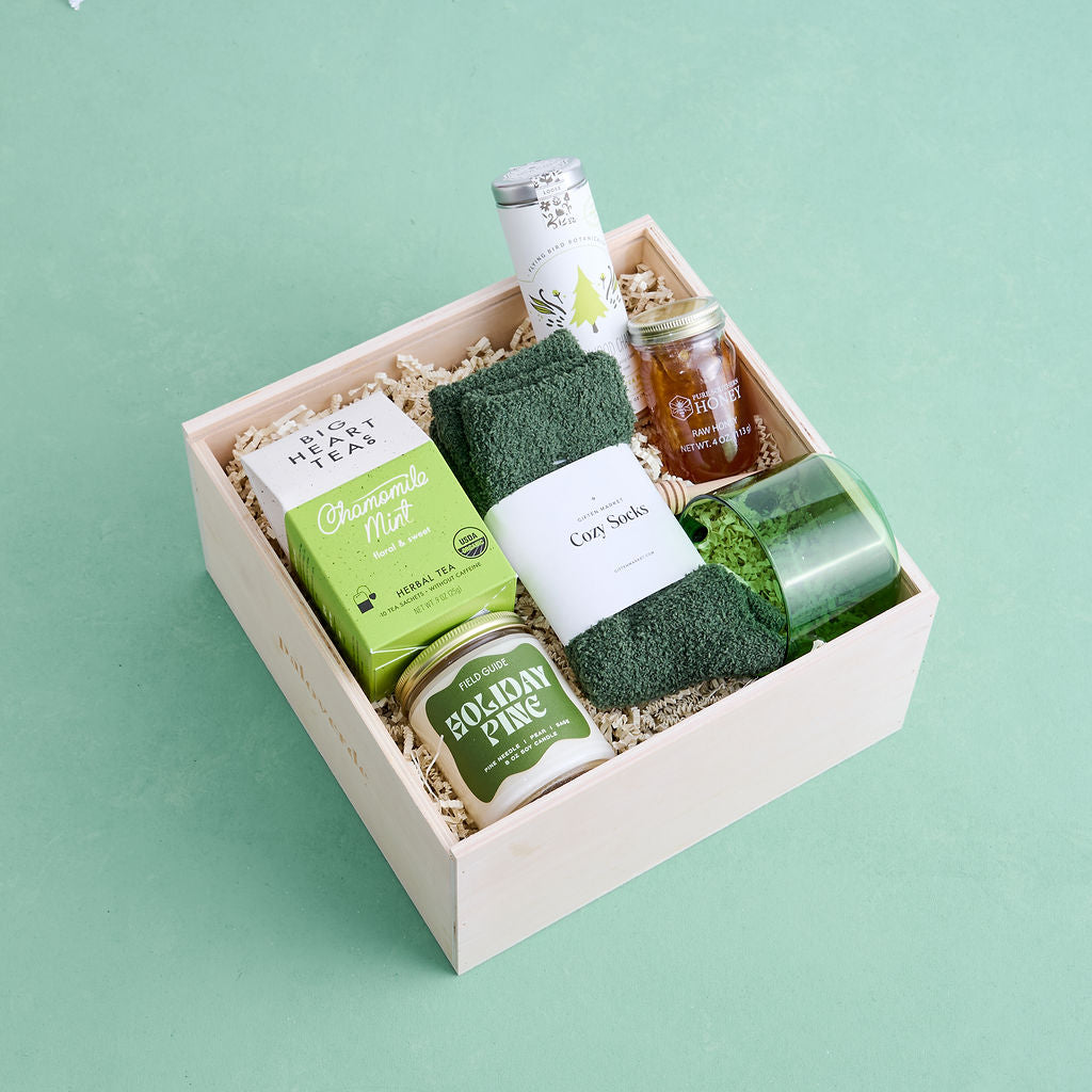 Fresh pine, soft socks, a steaming mug of tea — the Holiday Pine gift box is winter comfort, bottled up and ready to share. With cozy, woodsy scents and a touch of honeyed sweetness, this box is the perfect way to gift calm, comfort, and a little nature-inspired peace this holiday season.