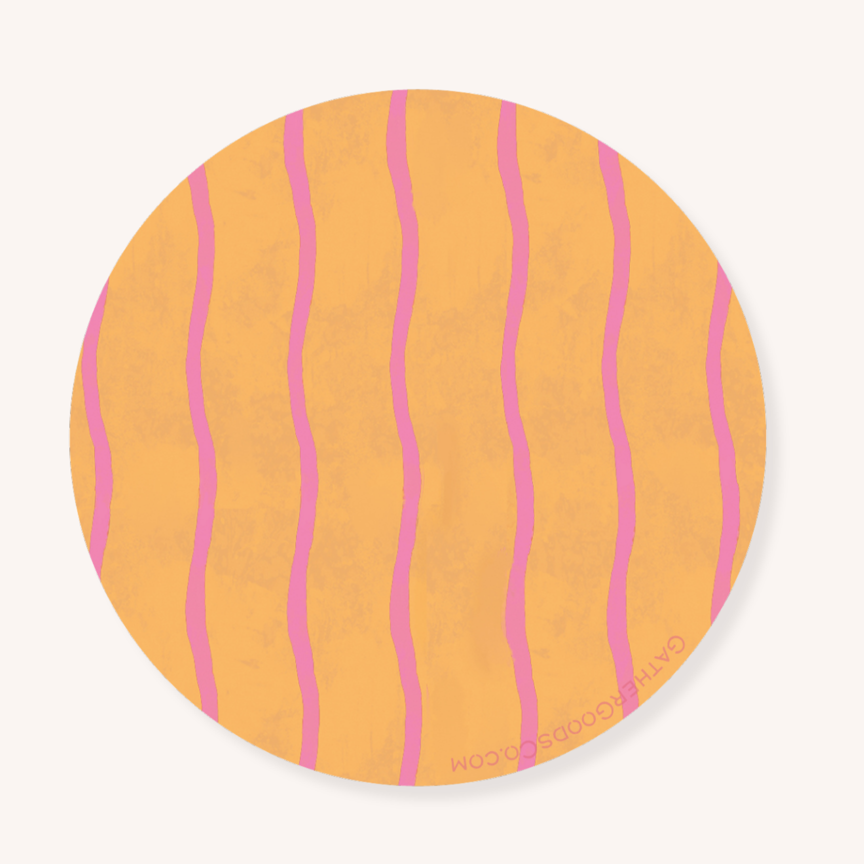 These fun and colorful coasters bring a pop of color to your home and interior decor. Featuring yellow and orange wavy line stripes, they are absorbent and good for hundreds of uses.
