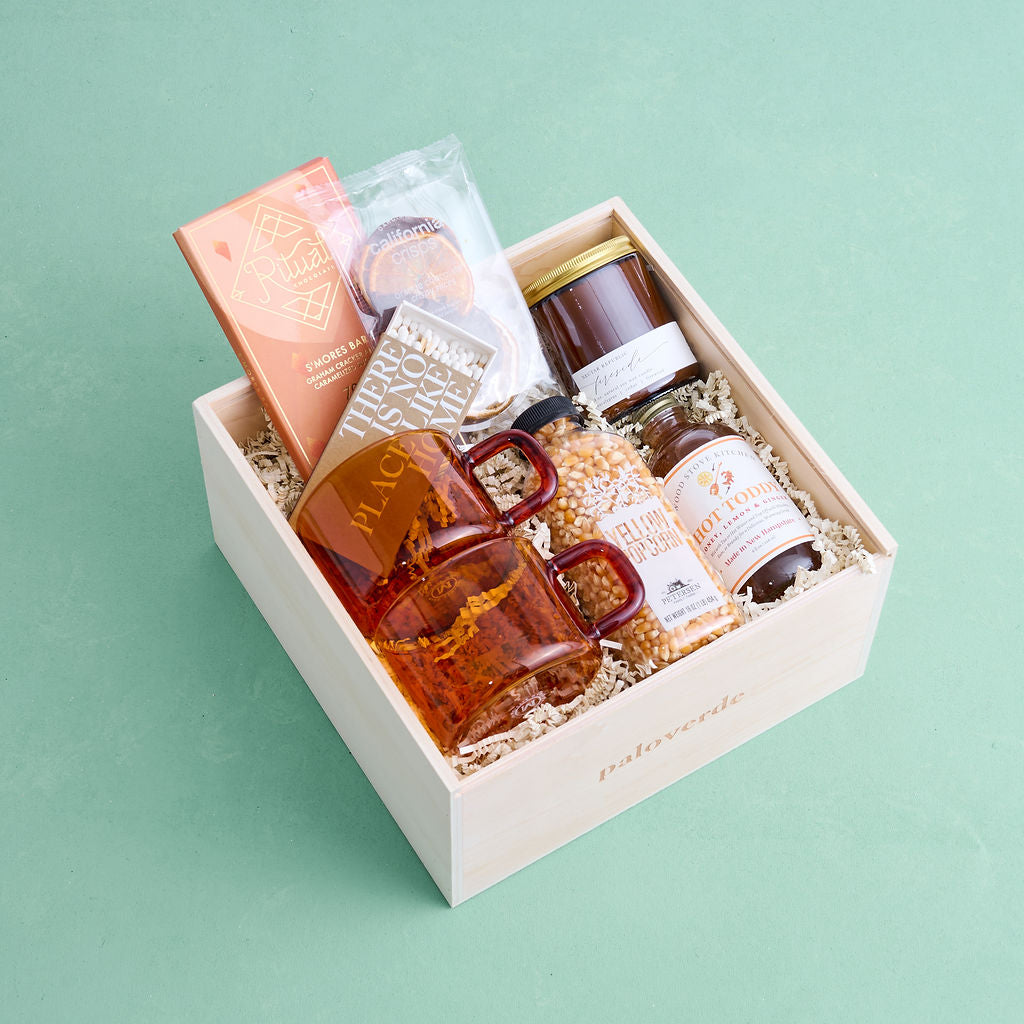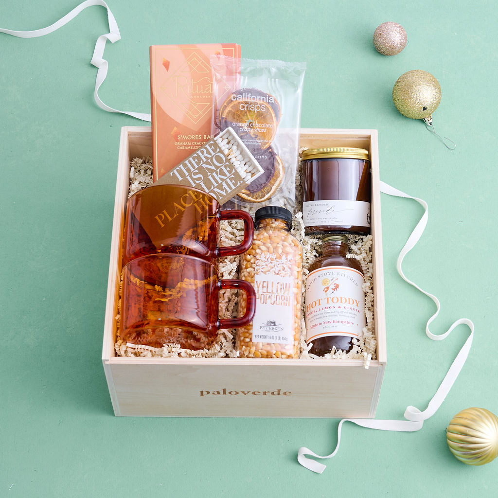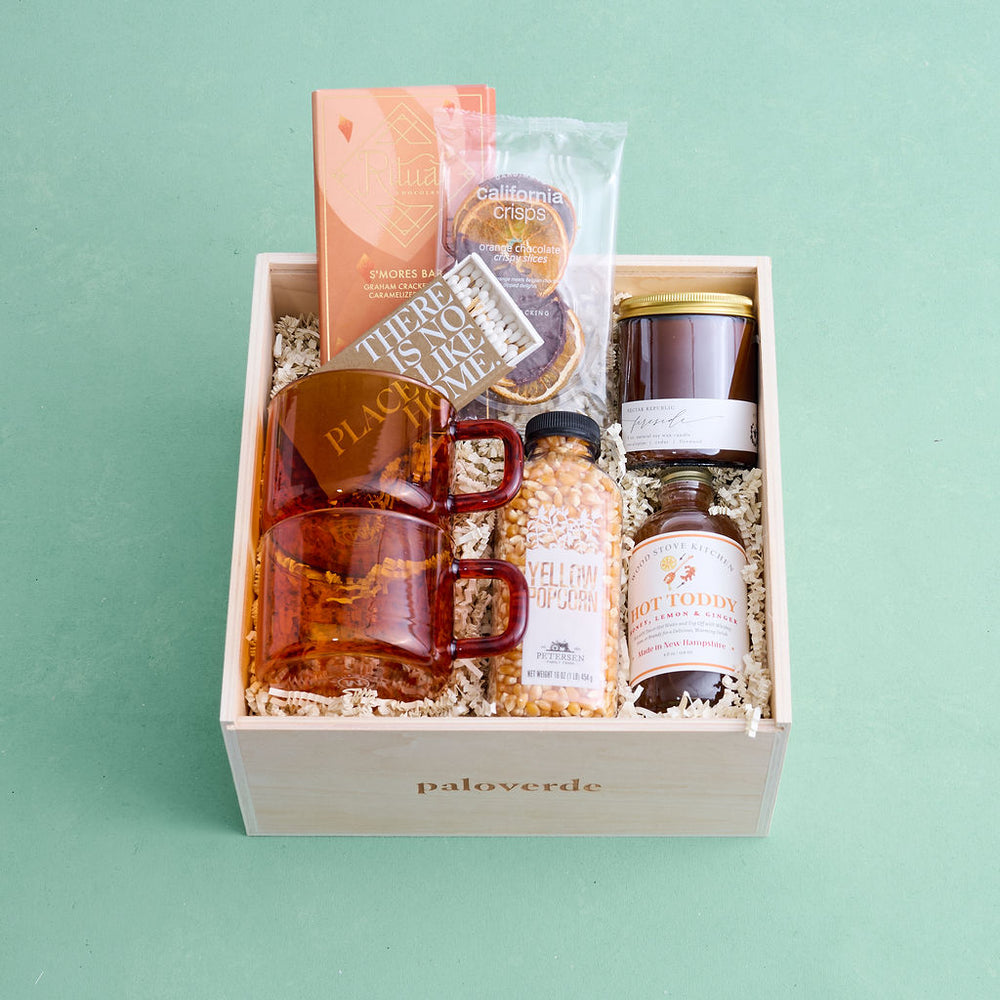 Light the candle, pour a warm drink, and let the Fireside Vibes gift box set the mood for the coziest night in. From sweet and savory snacks to a toasty toddy and glowing amber mugs, this box is made for unwinding in style. A perfect choice for housewarmings, date nights, or gifting comfort during the holidays.